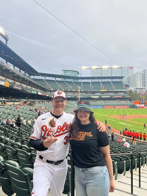 While there’s no official wedding date yet, Orioles fans are already imagining a baseball-themed ceremony — with orange-and-black décor, a cake shaped like Camden Yards, and vows delivered over the PA system.